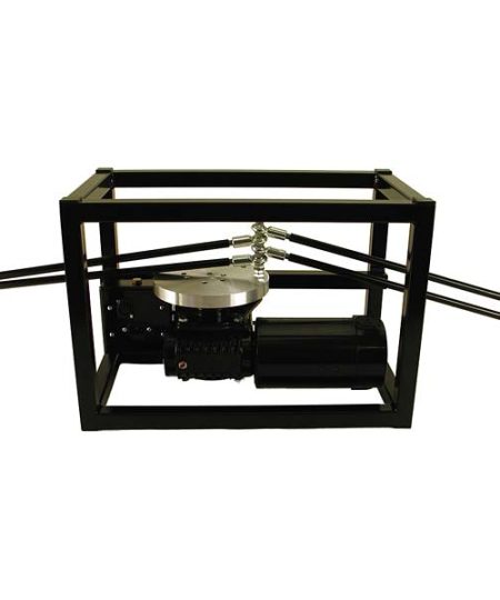 This machine features a very powerful motor, capable of any level of play. Each arm detaches from the pivot, and can be inserted through any of the four open sides. The Gang Bang’s sleek machined aluminum flywheel provides a very adjustable stroke — from 1″ to 6″ in length — which drives all attached arms simultaneously. Set up flywheel-down for low (missionary) action. Flip the machine flywheel-up for a higher doggie positioning. On its sides, the Gang Bang can be straddled and work to either side.
