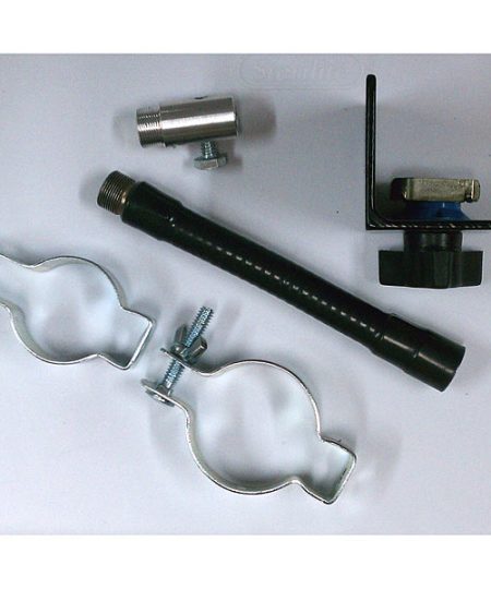 Gooseneck – This component comes in two lengths, 6″ and 12″. These steel-core flexible extensions may be positioned to any desired curvature and will hold that position. These goosenecks are coated in black vinyl, and rate for 9 and 3.25 pound loads respectively. When your setup allows, prefer the shorter gooseneck. Connections are 5/8-27 threading.